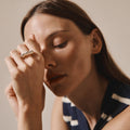 Volumes audacieux, perles graphiques, féminité tranchée. Chez D1928, chaque bague impose son caractère — portée seule ou empilée, selon l'humeur, le moment, le mouvement.